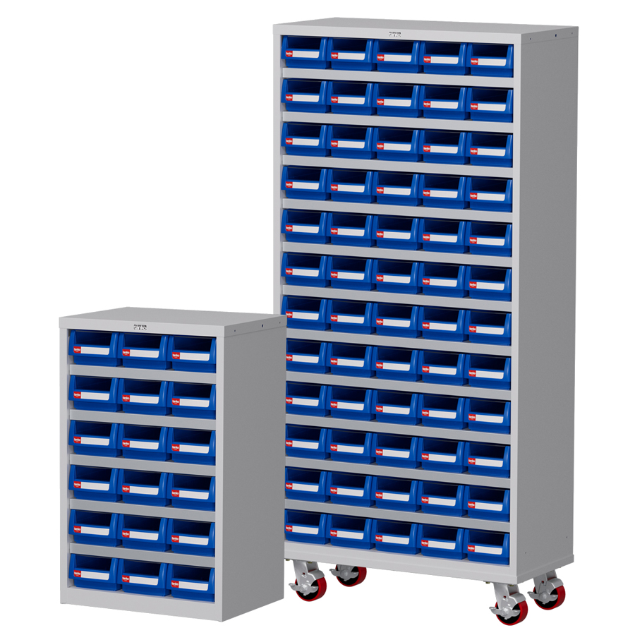大型零件櫃每屜皆搭配標示色卡使用,讓零件分類收納更快速
