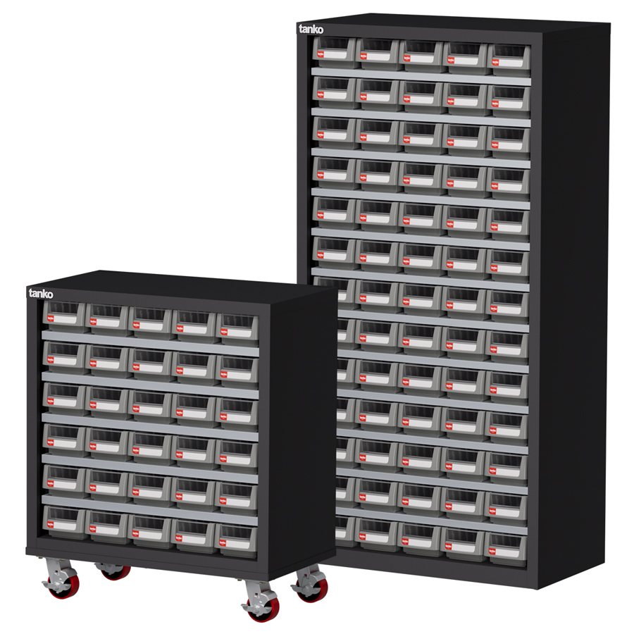 零件收納櫃每屜皆配標示色卡使用,讓零件分類收納更快速